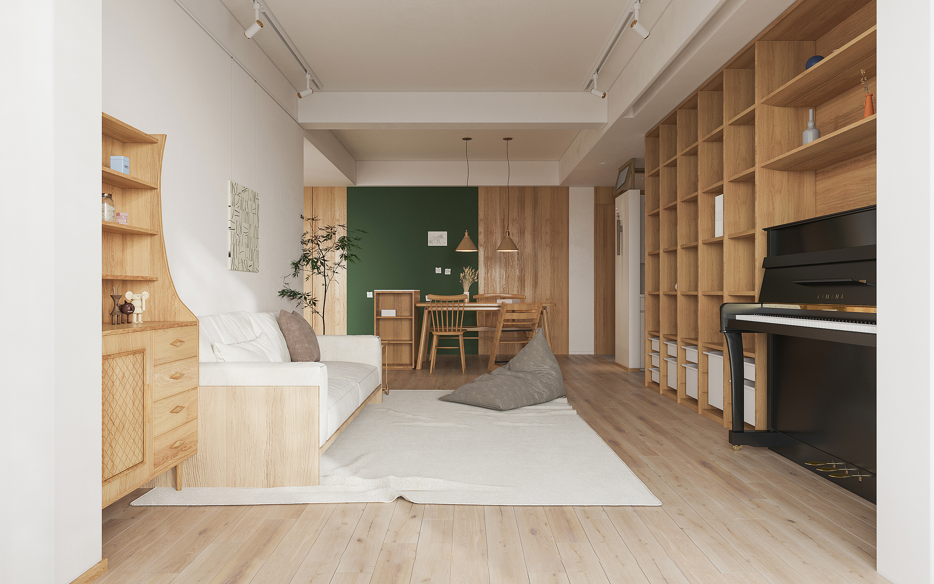 美式風格通常強調線條簡潔、材料粗獷、色彩對比明顯,同時也注重對形式美感的追求。我的客戶希望打造一個既舒適又時尚的居住環(huán)境,因此選擇了美式風格。為了突出客戶喜歡的顏色主題,將綠色作為主色調,并通過精妙的色彩搭配和幾何元素的裝飾達到了優(yōu)美而又奢華的效果。