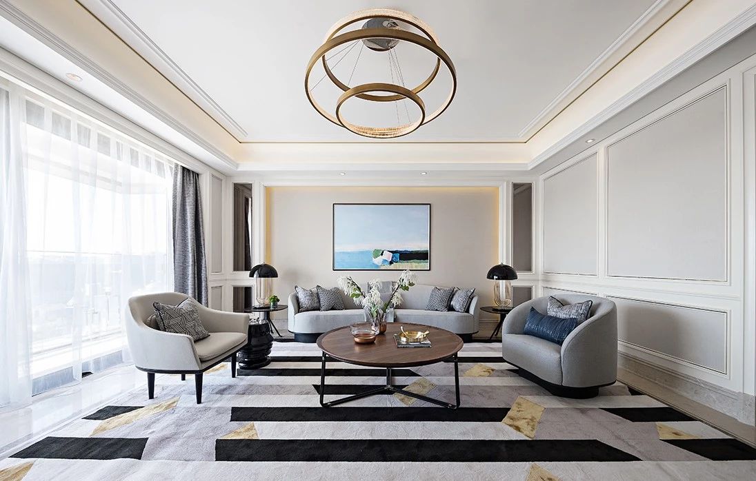 設(shè)計師將設(shè)計基礎(chǔ)風(fēng)格定為美式風(fēng)格,因為美式風(fēng)格能給人寬大舒適粗獷的感覺,符合業(yè)主及家人的需求,但美式家具不夠精致,故設(shè)計師在美式風(fēng)格的自由舒適中點綴著精致的家具,不急不躁,溫潤沉靜,醞釀出一種獨特而高雅的寧靜生活氛圍。