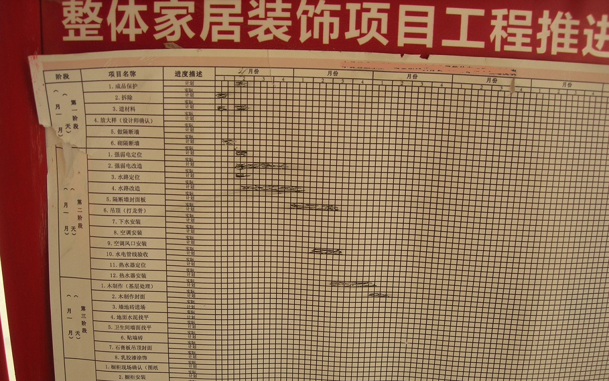 房子裝修時(shí)間跟房屋的面積、精裝還是簡(jiǎn)裝等方面有關(guān)。比如說房子的面積大又要精裝修,那么就可能需要花費(fèi)3-4個(gè)月的時(shí)間。一般情況下,業(yè)主選定裝修公司后,施工前家裝公司都會(huì)給一個(gè)關(guān)于工期的甘特圖或者工程進(jìn)度表,上面有每個(gè)階段的施工內(nèi)容與驗(yàn)收節(jié)點(diǎn),要了解自家房子的裝修進(jìn)度,一般都可以對(duì)照那個(gè)表。