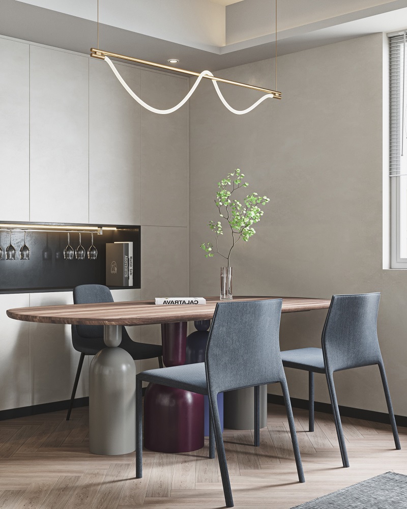 簡約的空間但色彩的運用通常都是不單調(diào)的,始終貫穿大面積的淺色調(diào),再用其他色彩去點綴,給人明亮、舒適的視覺感受。