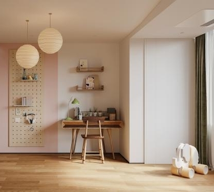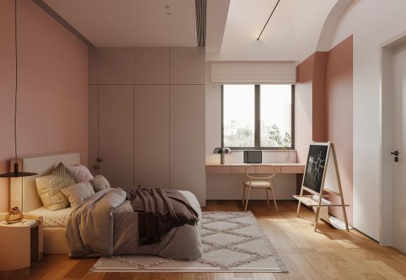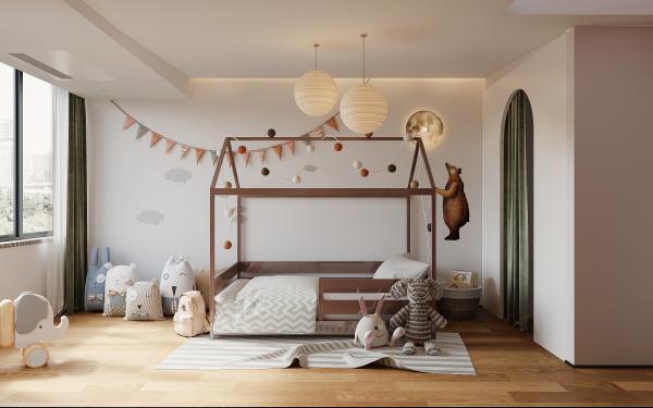 因為居住的人比較多,因此幾個房間在面積上都差不太多,只有兒童房因為擺了一張小床看起來寬敞一些,實際上面積和其他房間是差不多的。兩個大人的房間都是非常簡約的裝飾,而孩子們的房間因為讀書的需求,在設(shè)計上更加用心一些。