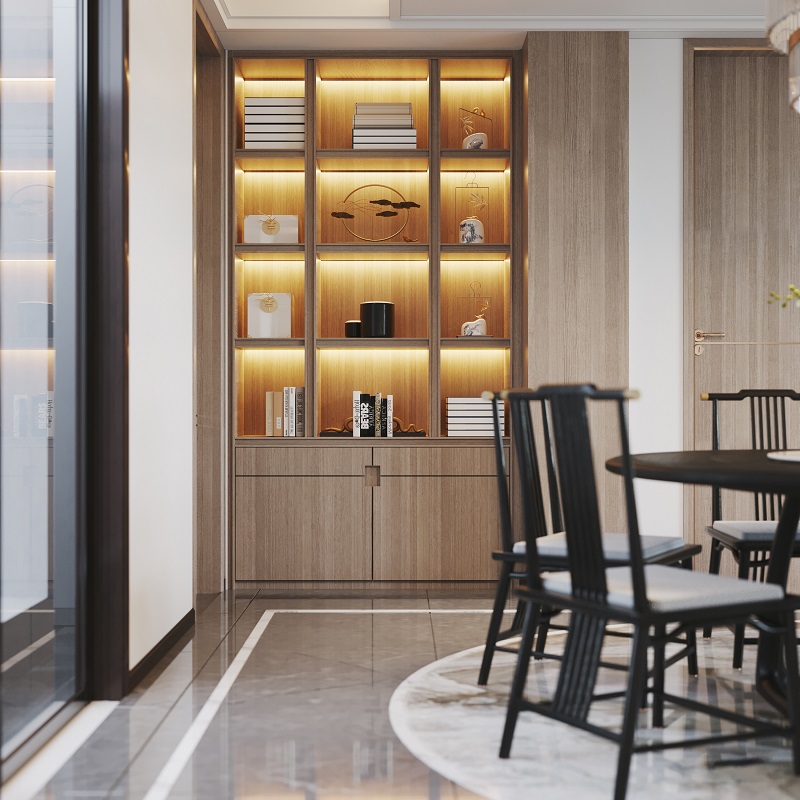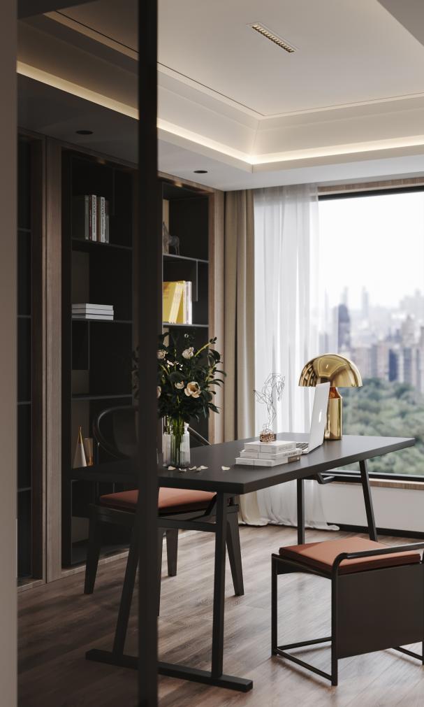 ▲側(cè)重于現(xiàn)代審美的新中式書(shū)房