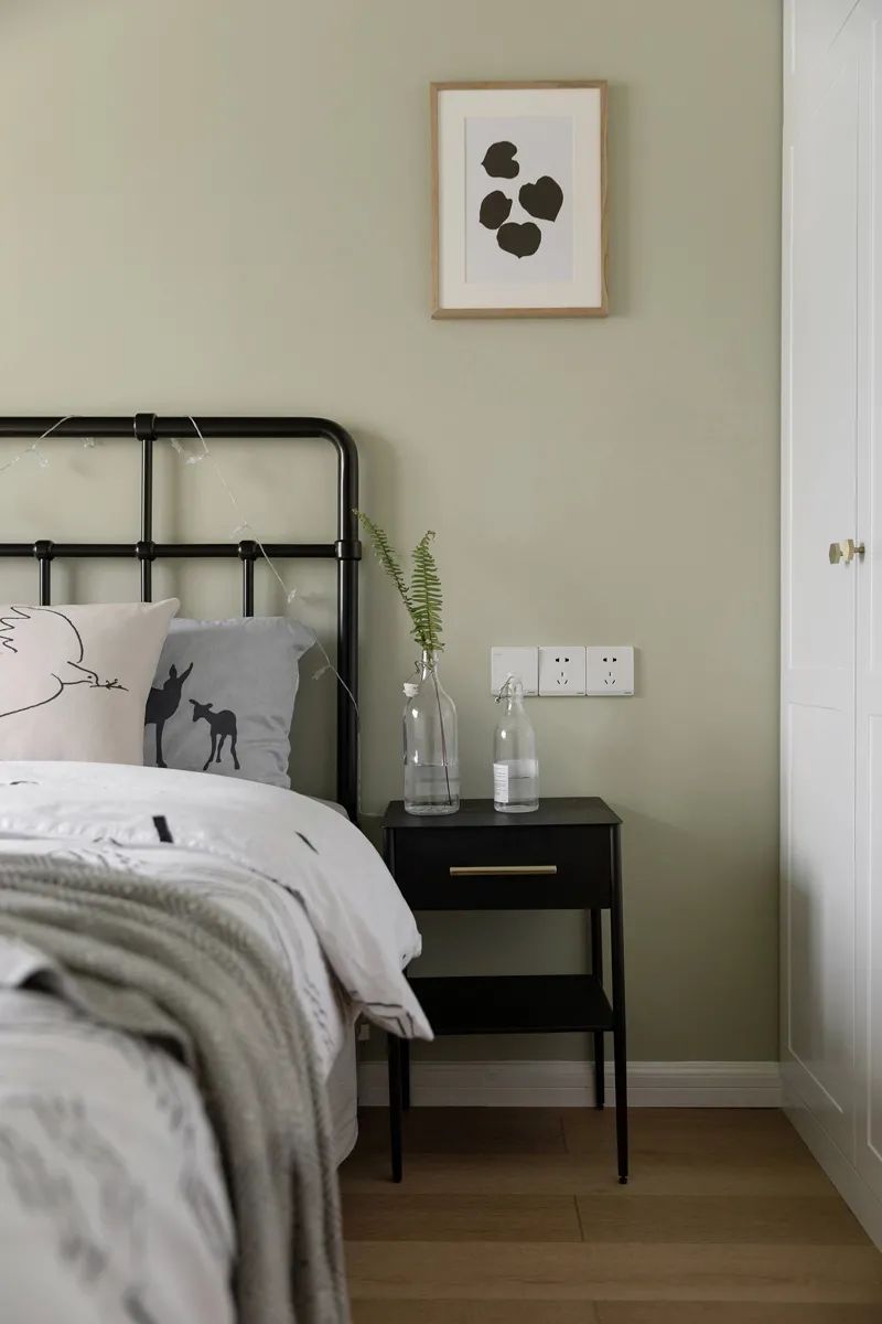 在獨(dú)具一格的清新魅力中,淡綠色背景墻像泡在山泉水中的薄荷糖,迸發(fā)出怡人質(zhì)感,在北歐腔調(diào)的包裹下,室內(nèi)韻味如早春的雨露,溫潤呼吸,給日子帶來更多生趣。