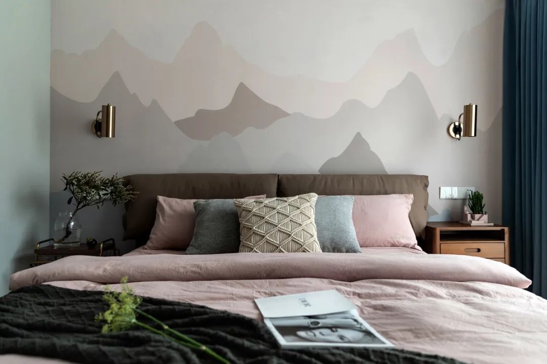 Bedroom tonal bold use warm color department morandi low saturation, deduce the impression of sweet and not greasy, dizzy wall of setting of different pigment, foil the gentle art atmosphere.