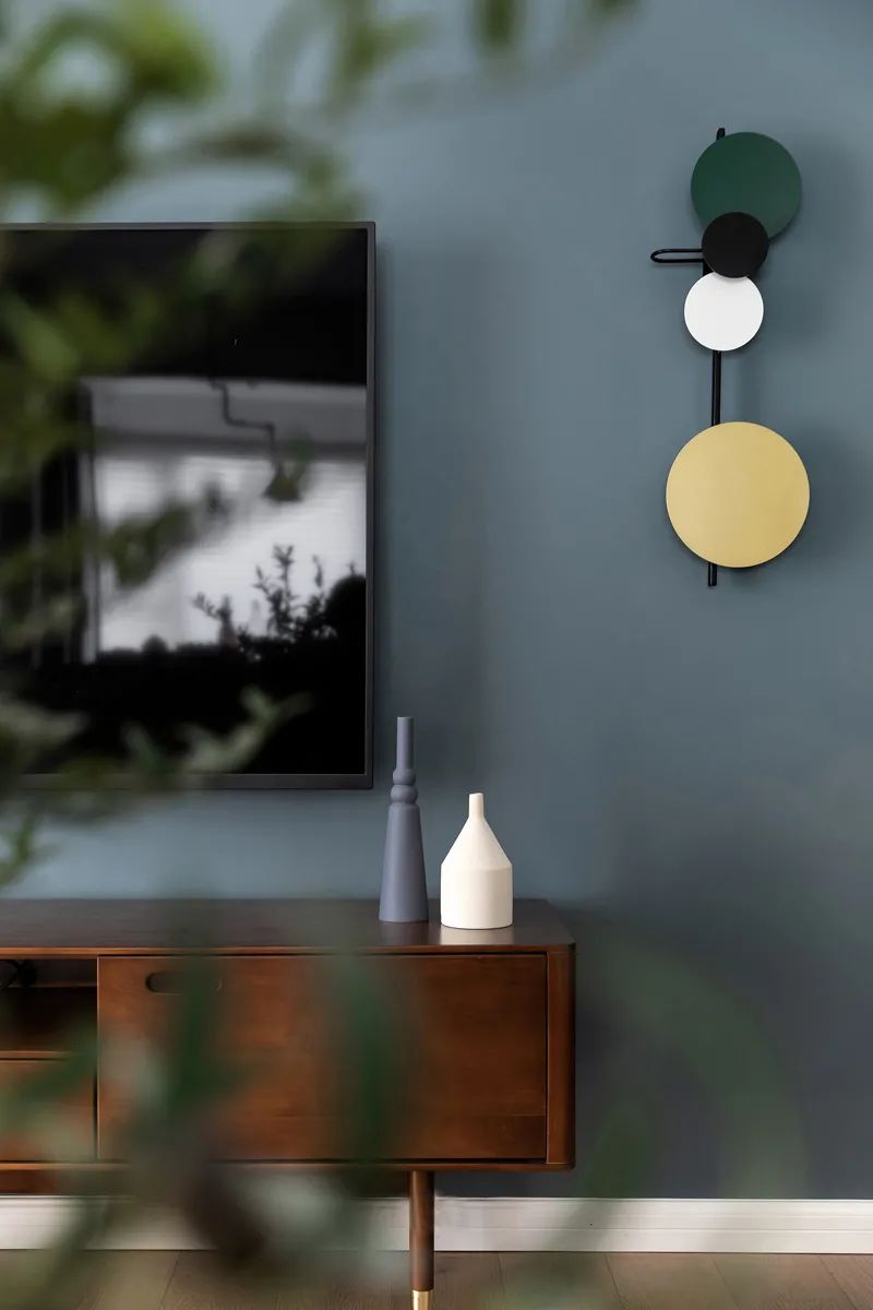 胡桃木電視柜流露出復(fù)古與摩登的默契共情,兼具收納功能的同時(shí)含蓄散發(fā)優(yōu)雅氣質(zhì),客廳墻面以簡約整潔為主,擺件與掛飾呈現(xiàn)清新時(shí)尚的北歐宜家風(fēng),陶瓷花瓶與莫蘭迪色系掛件將室內(nèi)美感細(xì)致描摹,克制的抒發(fā)藝術(shù)感。