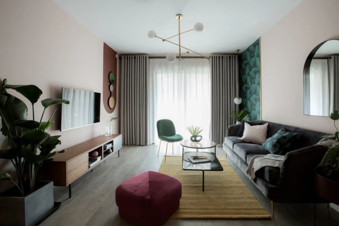 ◎ 客廳提煉莫蘭迪色系與北歐元素將氛圍注入愉悅的清新感,搭配線條與不同色塊營造自然層次,在浪漫而富有細膩質(zhì)感的脈絡(luò)中卸掉繁臃包袱。