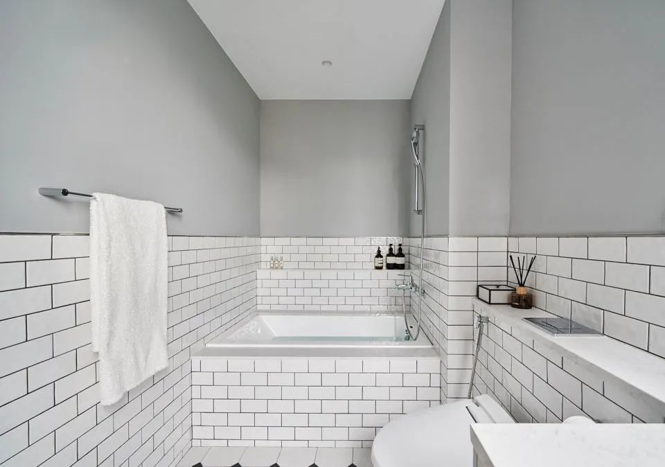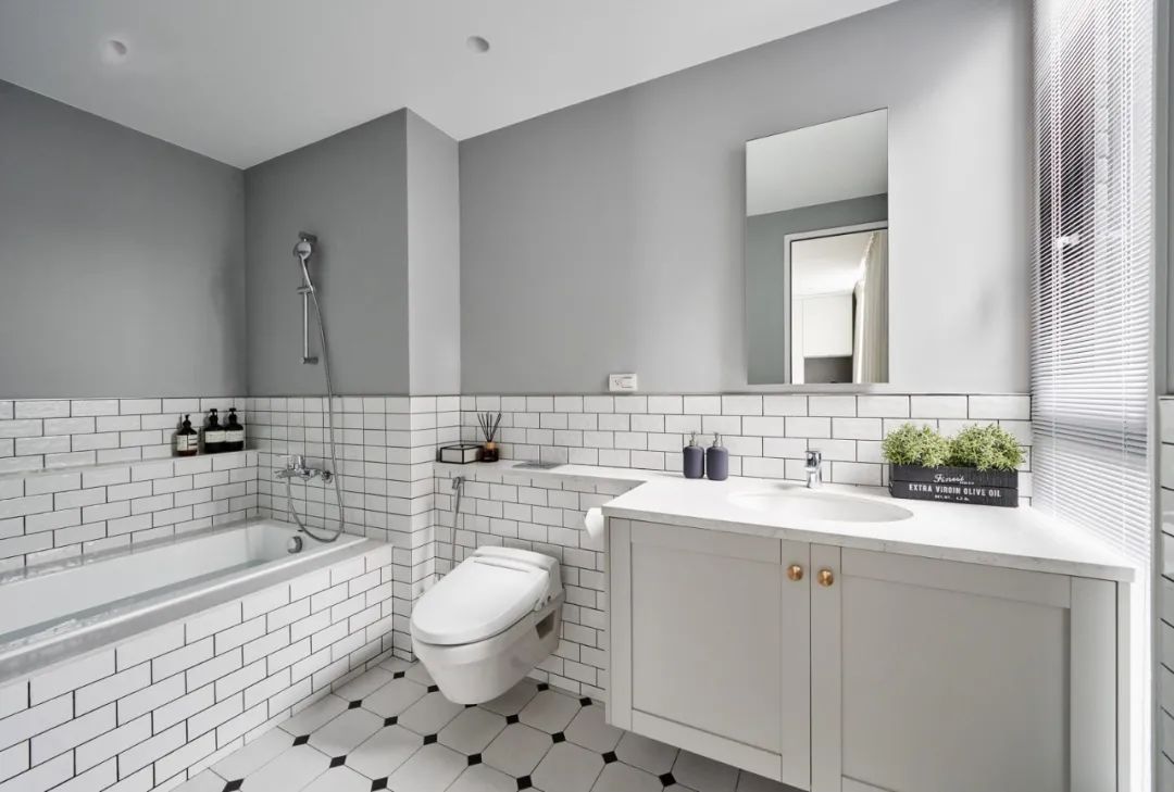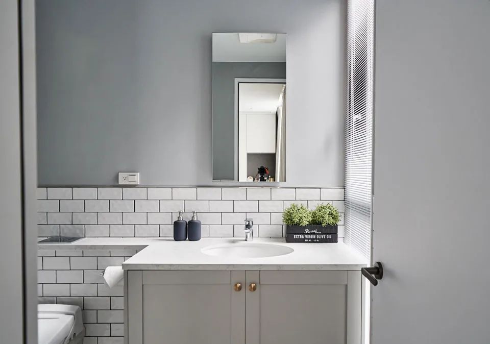 衛(wèi)浴間以"白"為主基調(diào),淺灰色涂料與瓷磚將空間二等分,在克制中將美學(xué)力量舒緩?fù)谐?,有章有序的營(yíng)造出層次感和立體感。小份綠植的加入成了空間"幻想"的一個(gè)跳板,讓這潔凈而夢(mèng)幻的衛(wèi)浴空間更具動(dòng)態(tài)魅力。