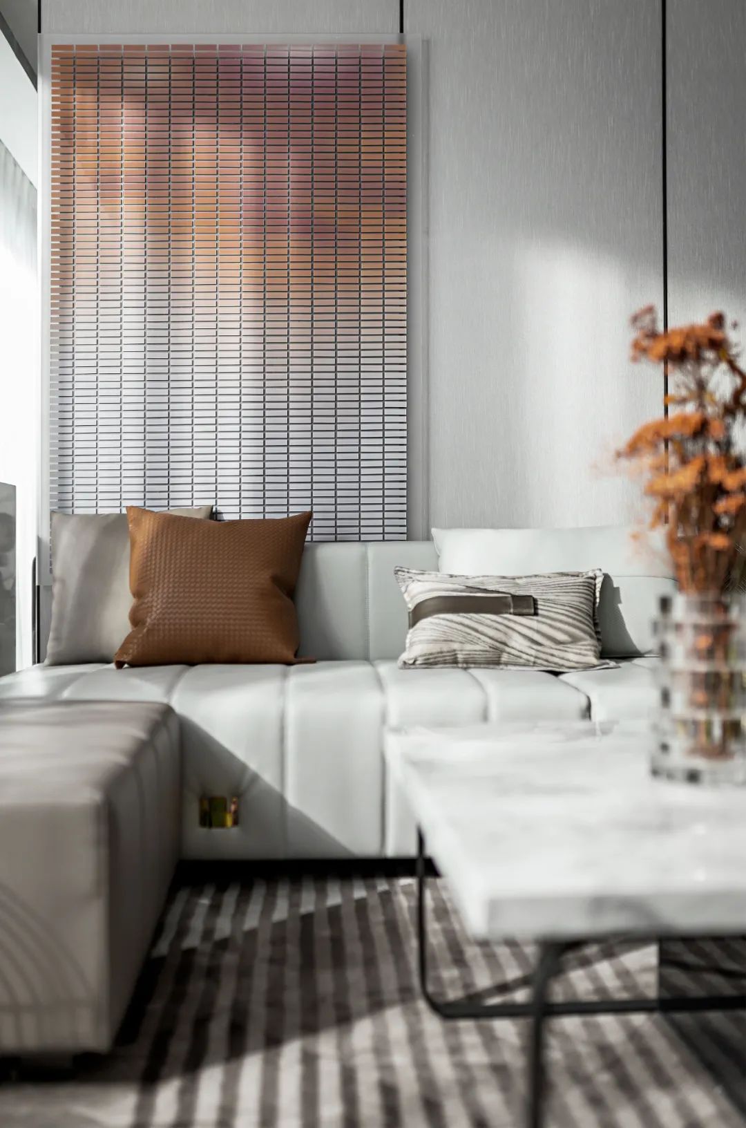 ● 從自然中來,自當(dāng)回到自然中去,我們參照四季中冬季的不添雜質(zhì)的純粹與恬雅,打造室內(nèi)“冬”主題的優(yōu)雅之境。