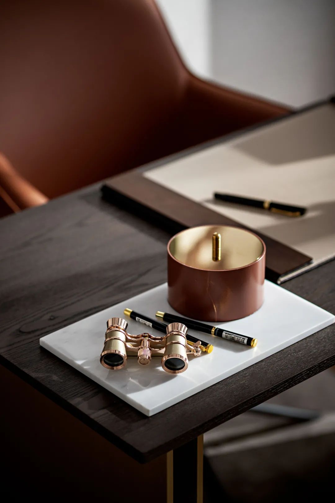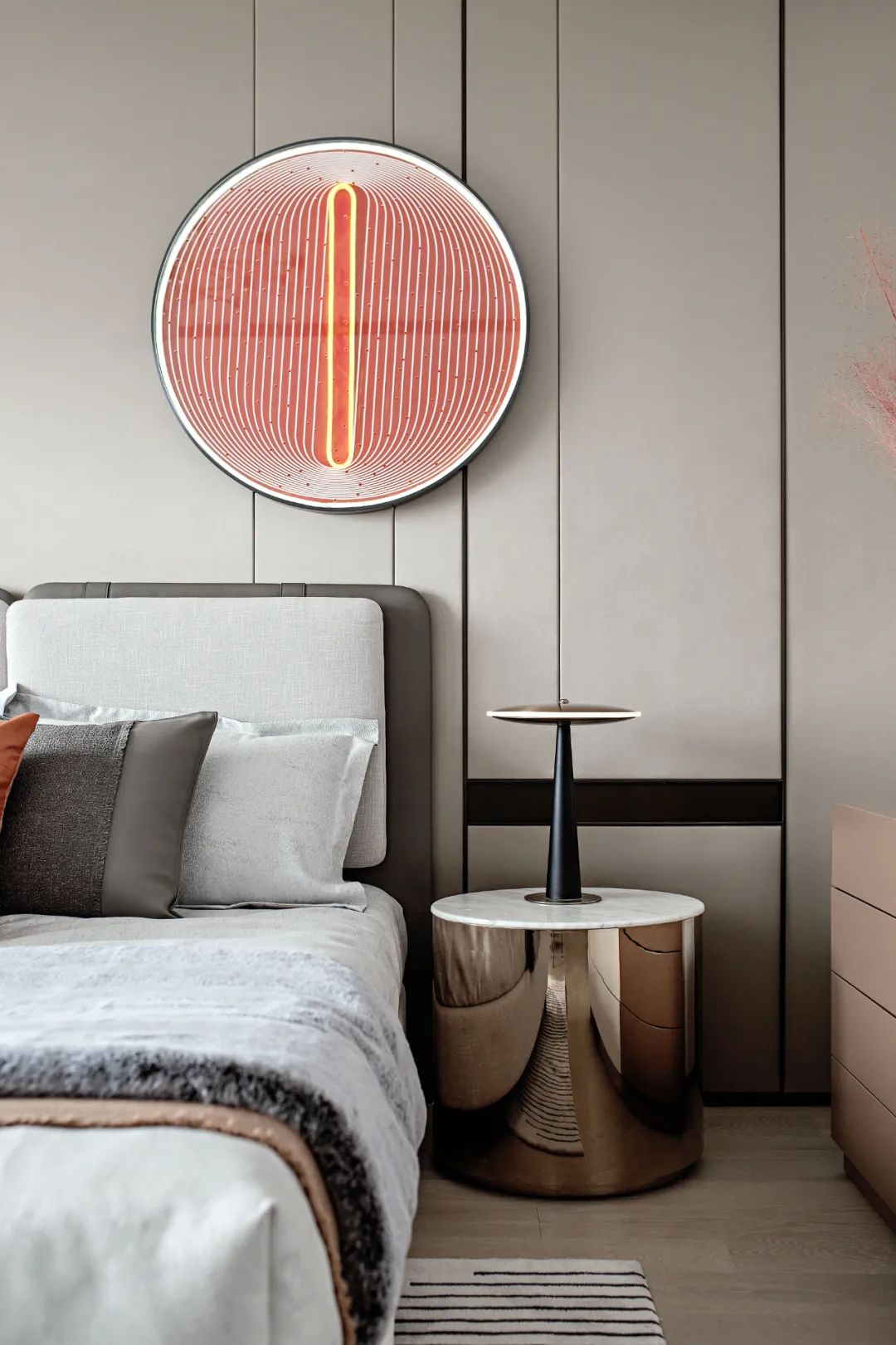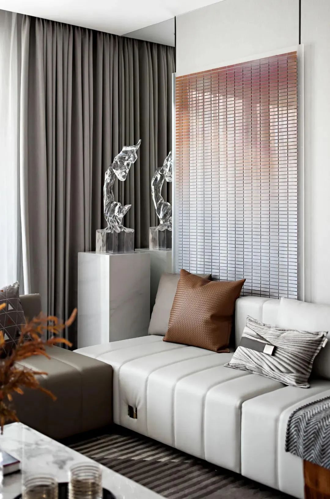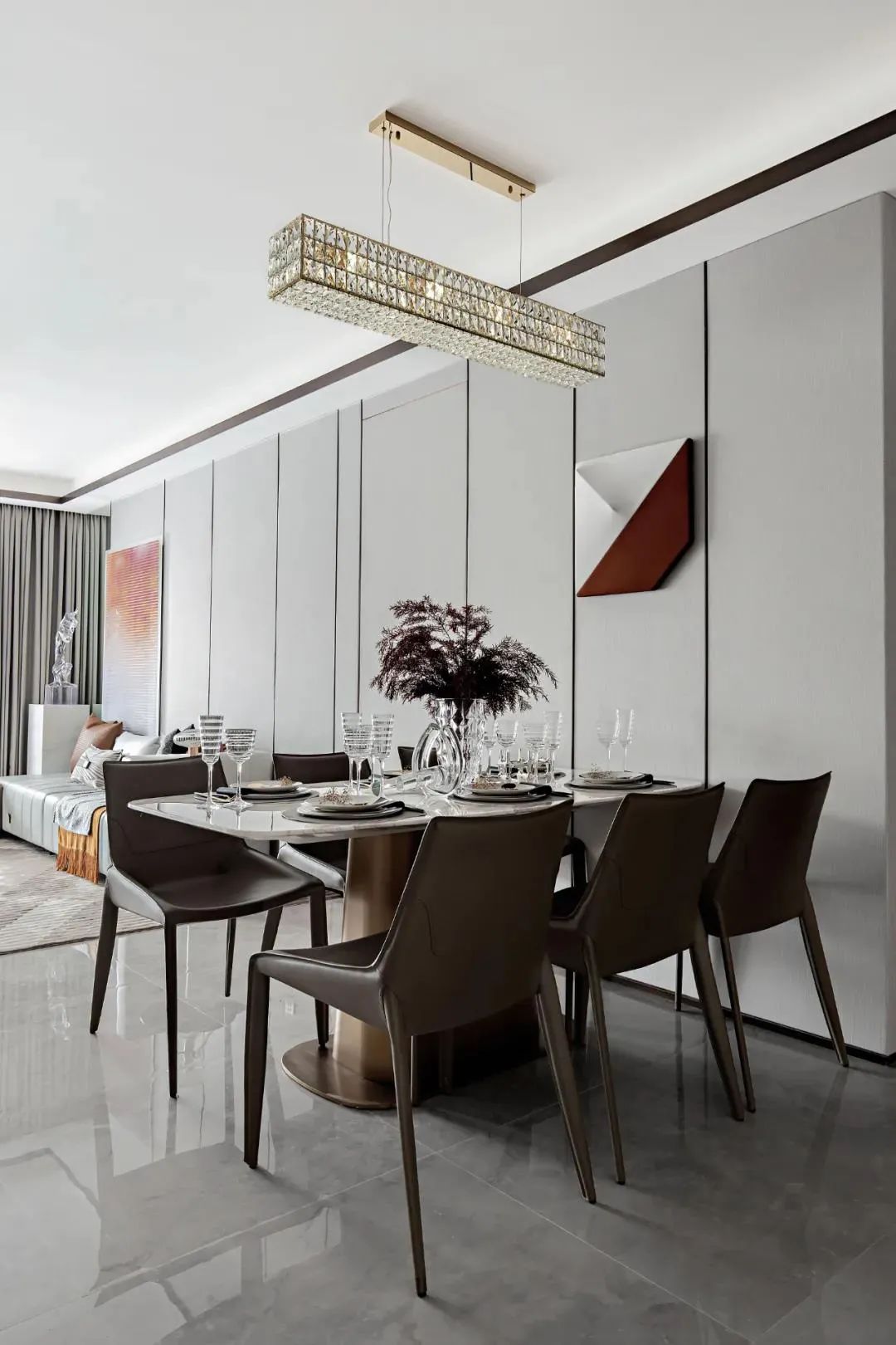 沉穩(wěn)咖色與高級灰搭配,演繹出專屬優(yōu)雅的氣質(zhì),使整個空間充滿穩(wěn)重,點綴的金屬跳躍在空間中,增添了一絲時尚與奢雅格調(diào)。