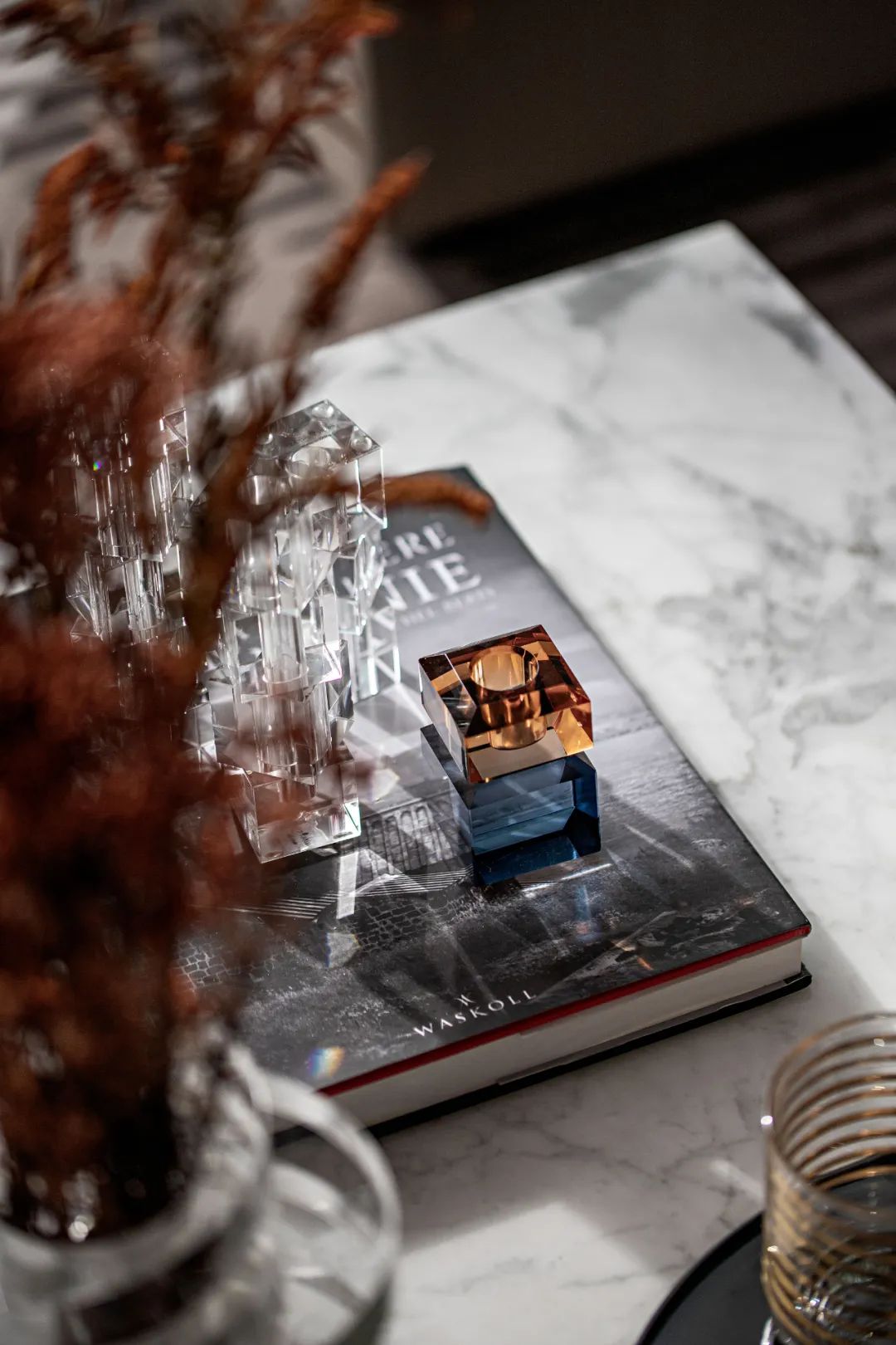 # 空間色調(diào)以白,咖,紅為主,時尚又大氣。軟裝材料我們多選擇玻璃,大理石,金屬,皮藝等,渲染出室內(nèi)精致氣息和儀式感。