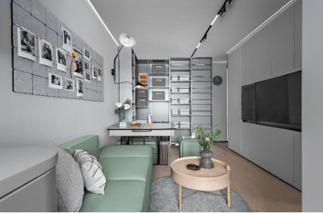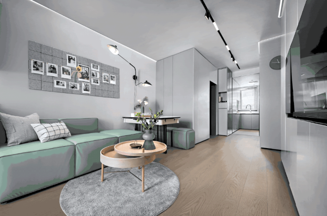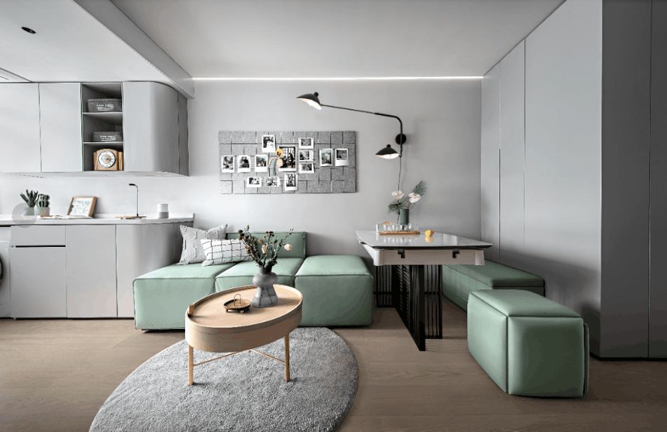 全屋整體灰調(diào)設(shè)計(jì),沉靜婉約,簡約清新沙發(fā)可DIY肆意布局,高機(jī)動性滿足對家的種種需求,室內(nèi)每一個轉(zhuǎn)角都有存放夢想的"暗格"。