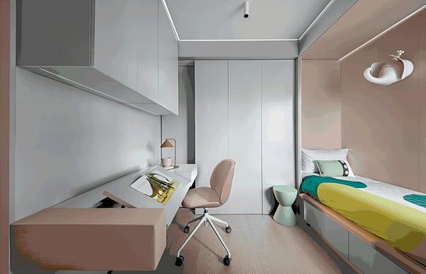 次臥與兒童房相連,一個空間凹出兩間臥室,還能滿足動線順暢無阻。