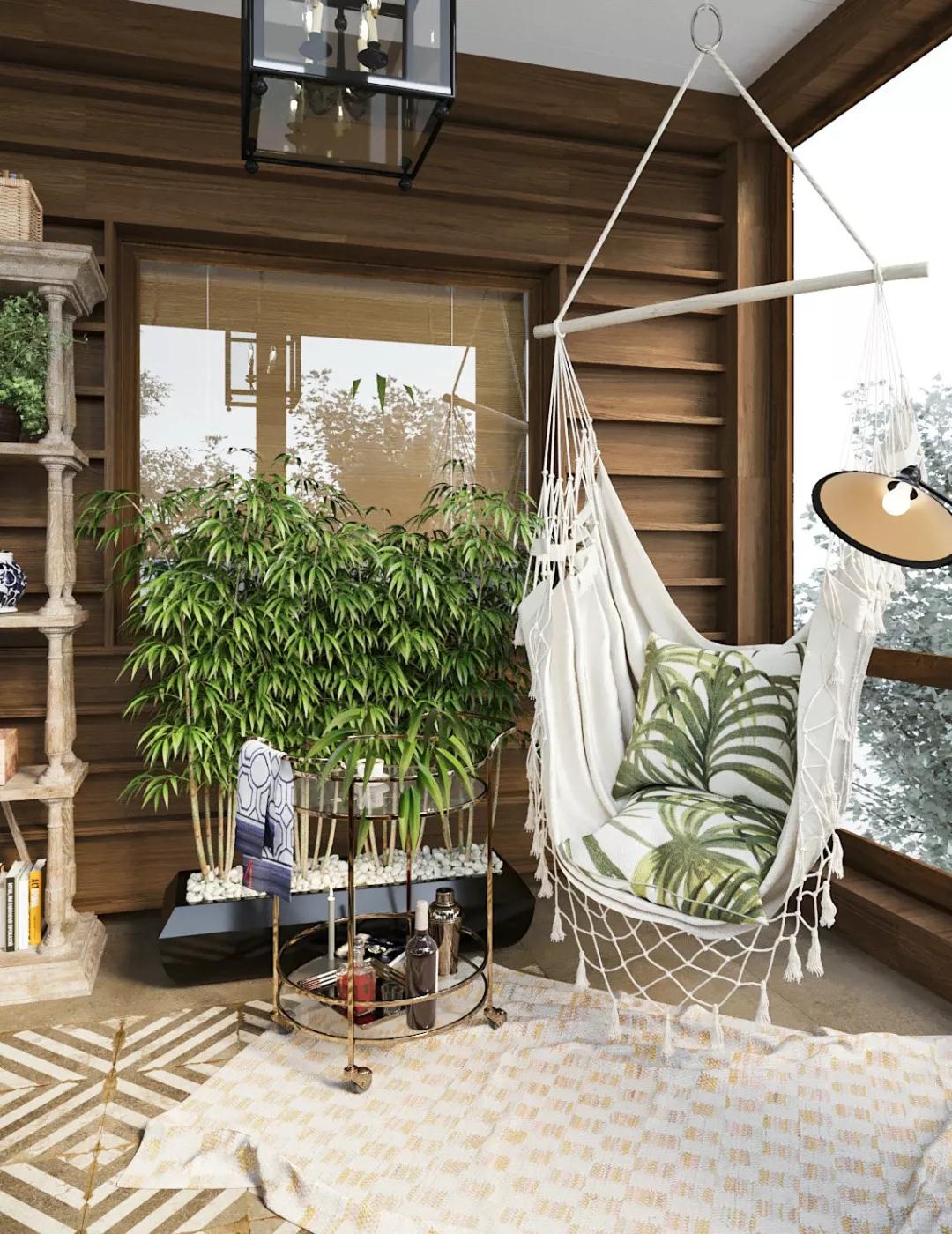 在天花板上打一個(gè)孔,安裝一個(gè)小秋千,在飯后捧著一本好書,坐在秋千上,輕搖漫看,微讀細(xì)品,是生活的自在,也是詩(shī)意的時(shí)光。若是家里有小朋友,將此種陽(yáng)臺(tái)作為他娛樂(lè)玩耍的地方,亦未嘗不可。