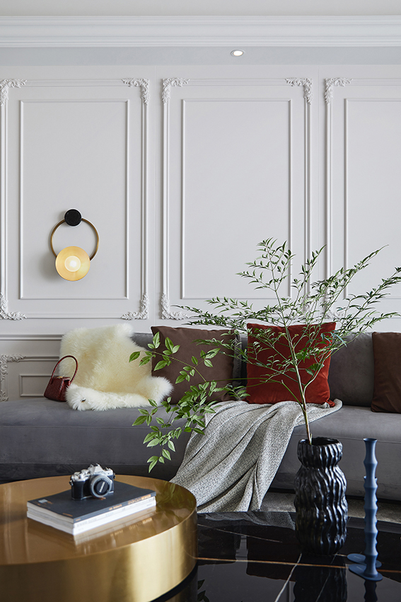 優(yōu)雅的線條、雕花,弧形沙發(fā),整個(gè)空間調(diào)性都非常溫柔和慵懶的感覺(jué),讓業(yè)主能完全的在家里放松下來(lái),還原浪漫之家。