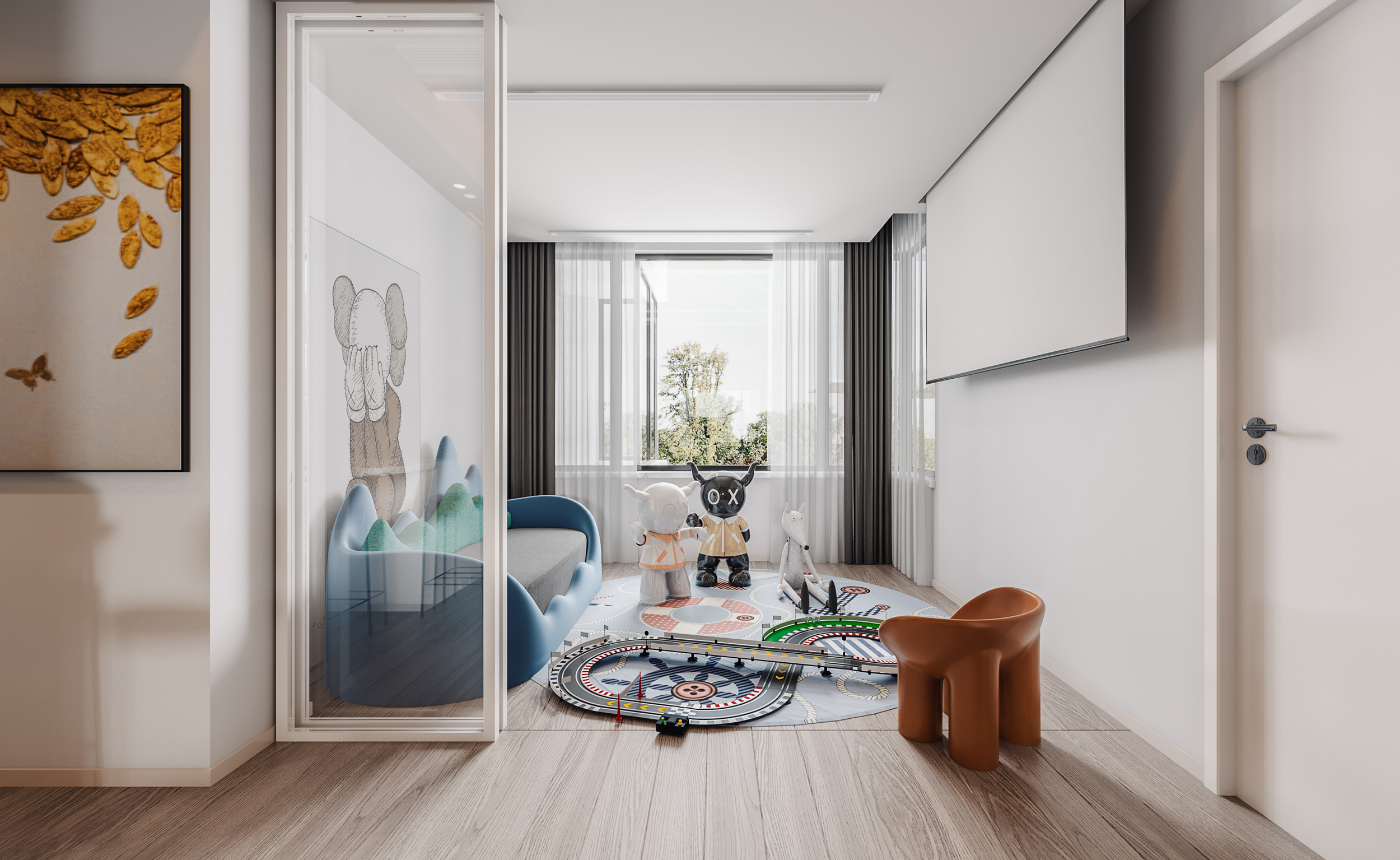 將房間一處角落改造成兒童娛樂(lè)區(qū),同時(shí)安裝投影儀,在家也能享受到影院一樣的視聽(tīng)效果,不僅可以滿足娛樂(lè)需求,還豐富了空間的文化、藝術(shù)性。