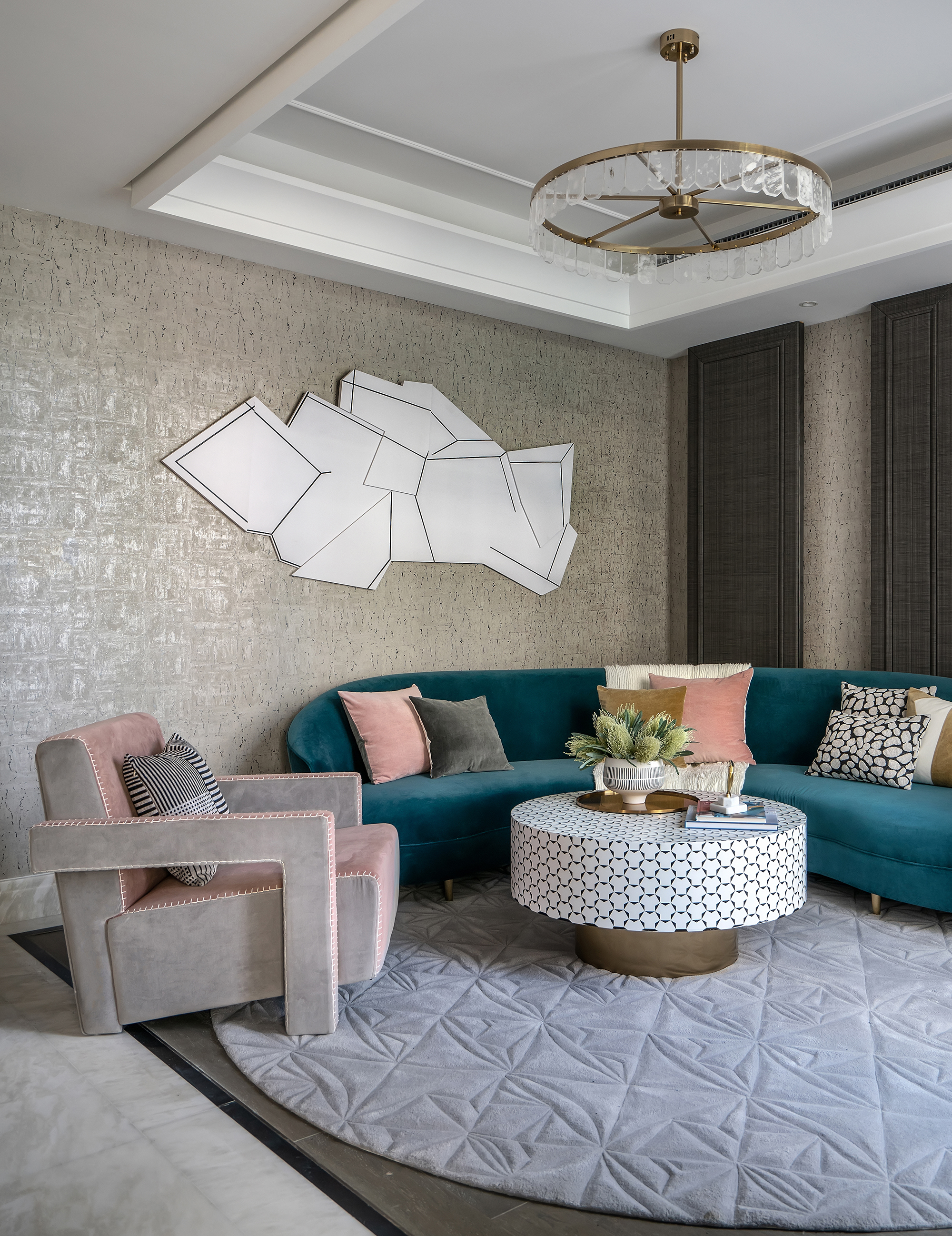 這套別墅面積275平,在設(shè)計(jì)上大膽的運(yùn)用多種色彩碰撞,加上幾何元素裝飾,讓整個(gè)空間顯得奢華卻又不失優(yōu)雅。