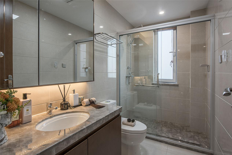 衛(wèi)生間用玻璃推拉門進行隔斷,這樣能達到隔而不斷的視覺效果。 以上就是小編帶來的新中式風(fēng)格裝修案例,希望你們喜歡。